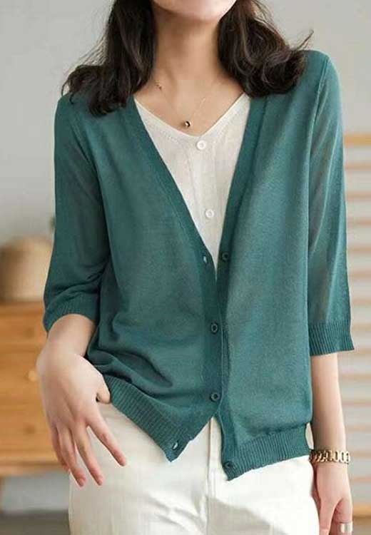 7-1328★청록색세일★(가디건니트)브이넥 흰색니트위에 가디건을 걸쳐입은듯한 느낌을 주는 레이어드 니트.